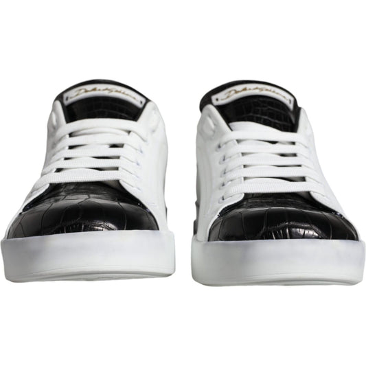 Dolce & Gabbana White Leather Logo Portofino Sneaker Shoes