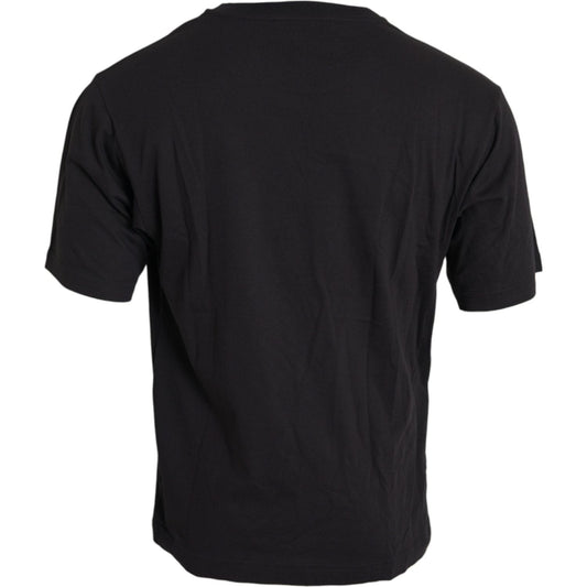 تي شيرت دولتشي آند غابانا قطني أسود بطبعة جيب وياقة دائرية
