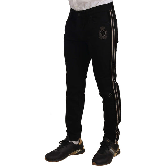 بنطلون جينز ضيق أسود مطرز بشعار Dolce & Gabbana