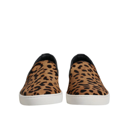 Dolce & Gabbana Brown Calfskin Fur Leopard Sneakers Shoes