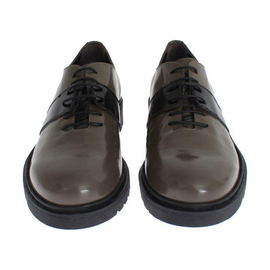 AI_ حذاء أنيق من الجلد باللون الرمادي والبني برباط