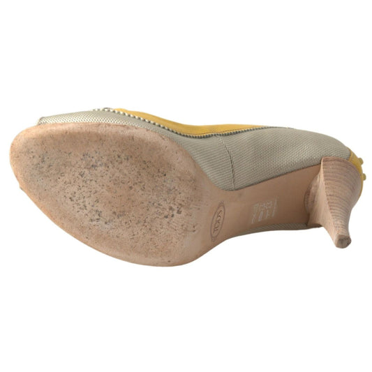 Tod's Yellow Off White Peep Toe Heels Pumps Shoes