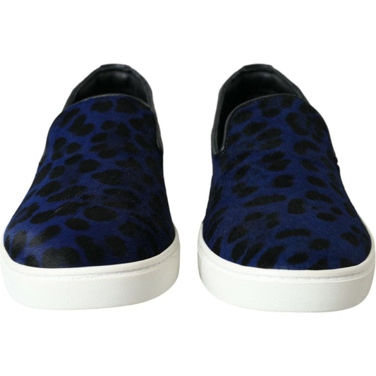 Dolce & Gabbana Blue Calfskin Hair Leopard Sneakers Shoes