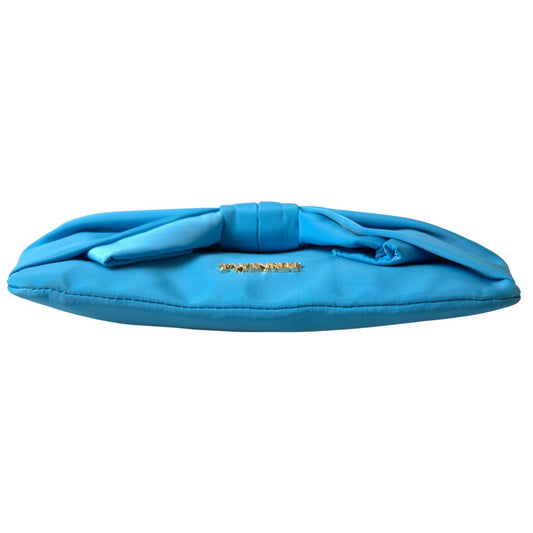 Twinset Blue Tafta Silk Large Bow Zipper Clutch Women Borse Logo Bag