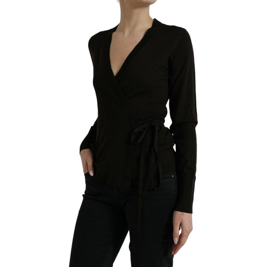 Dolce & Gabbana Black Wool V-neck Crossed Cardigan Sweater