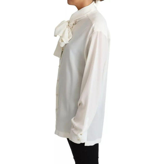 Dolce & Gabbana White Blouse Ascot Collar Shirt Silk Top