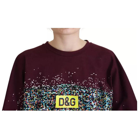 Dolce & Gabbana Maroon Printed Crewneck Tee Cotton T-shirt