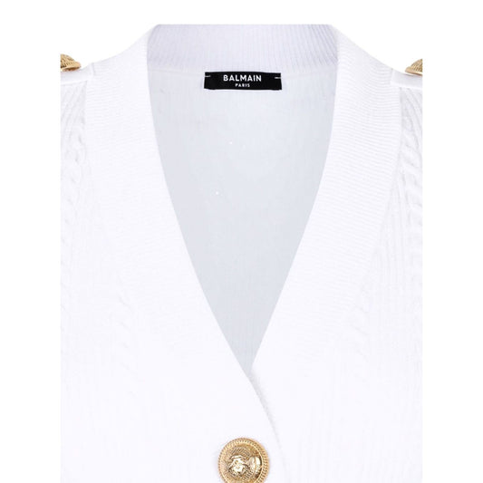 Balmain Button-Trim Cable-Knit Cardigan