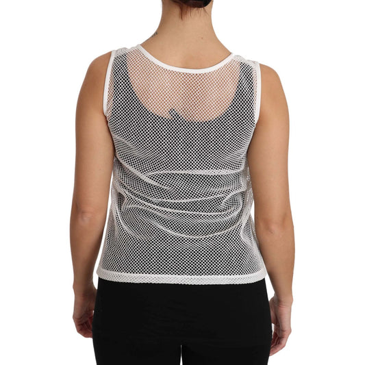 Dolce & Gabbana White Net Transparent Sleeveless Tank Top