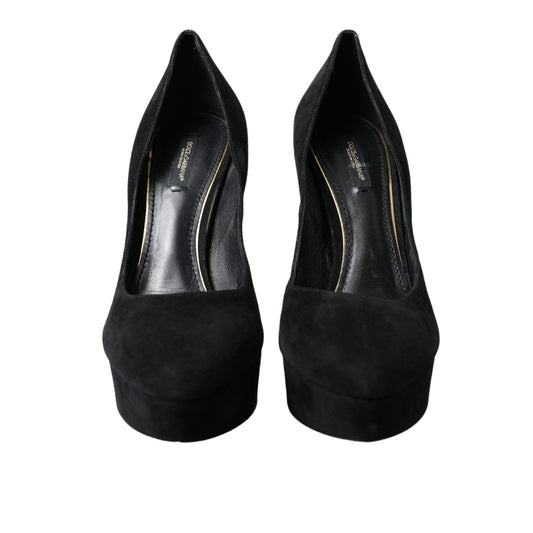 Dolce & Gabbana Black Suede Leather Platform Heel Pumps Shoes